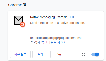 다음으로, 크롬 브라우저에서 Native Messaging Example 앱을 클릭하여 줍니다.