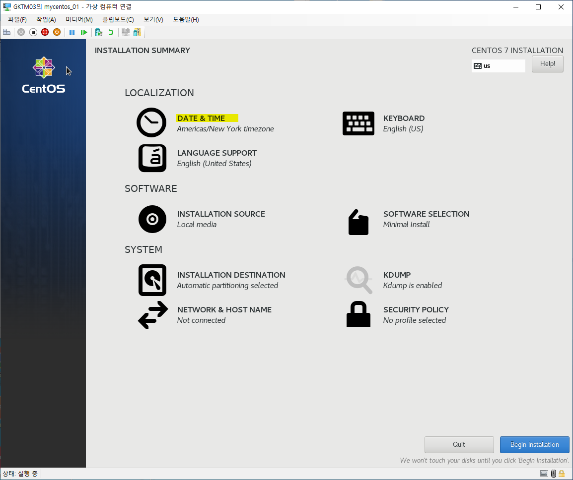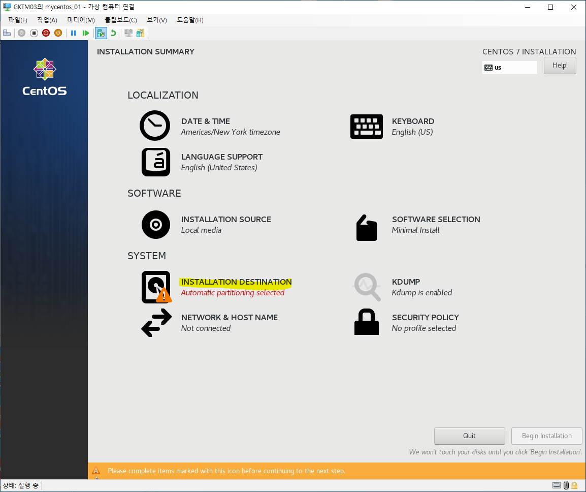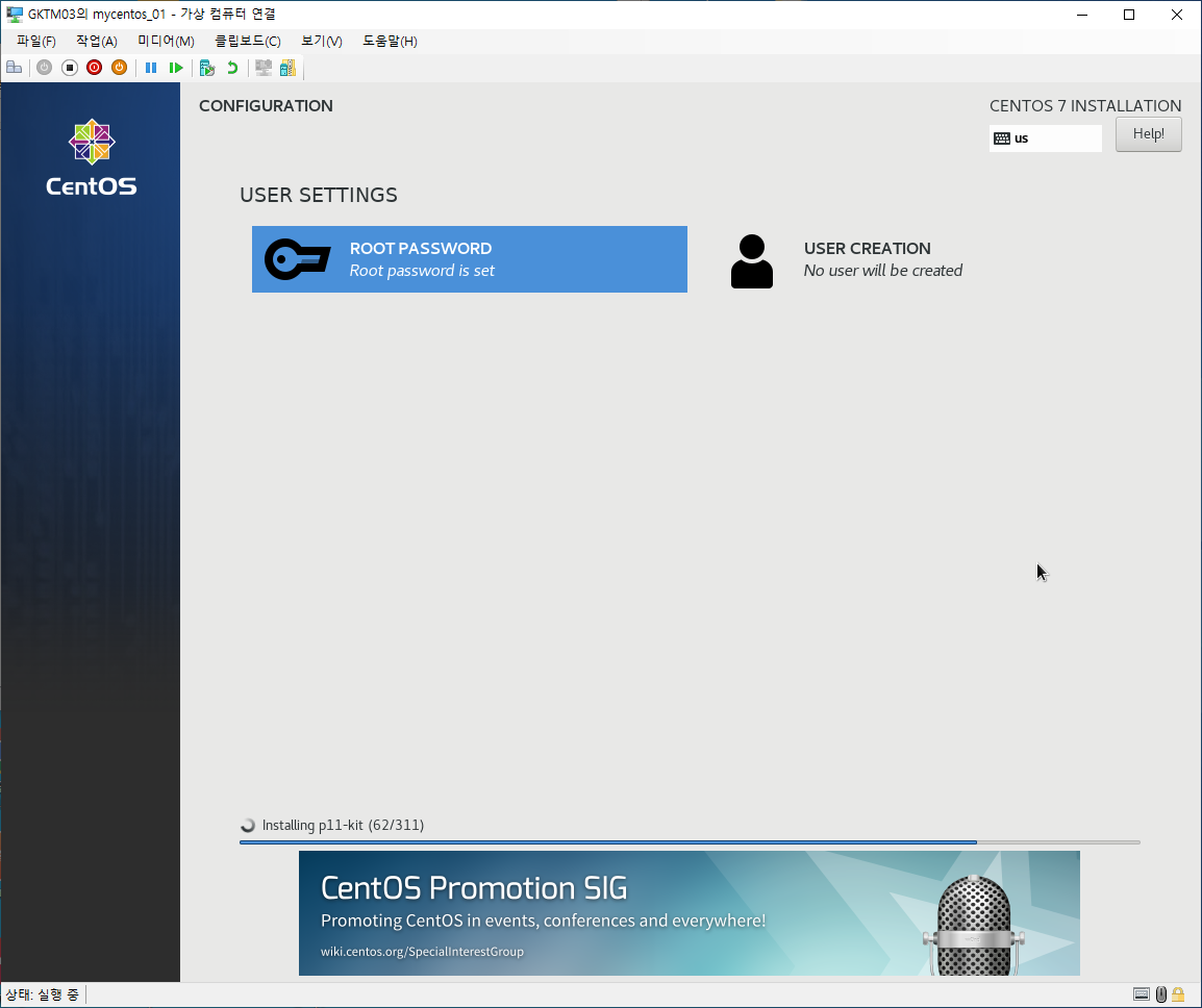 여기까지가 CentOS 7의 설치방법이였으며, 이후 네트워크 설정 방법은 여기를 참조하면 됩니다.