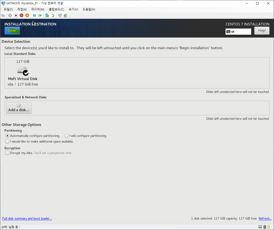 <Installation Destination>을 클릭합니다.