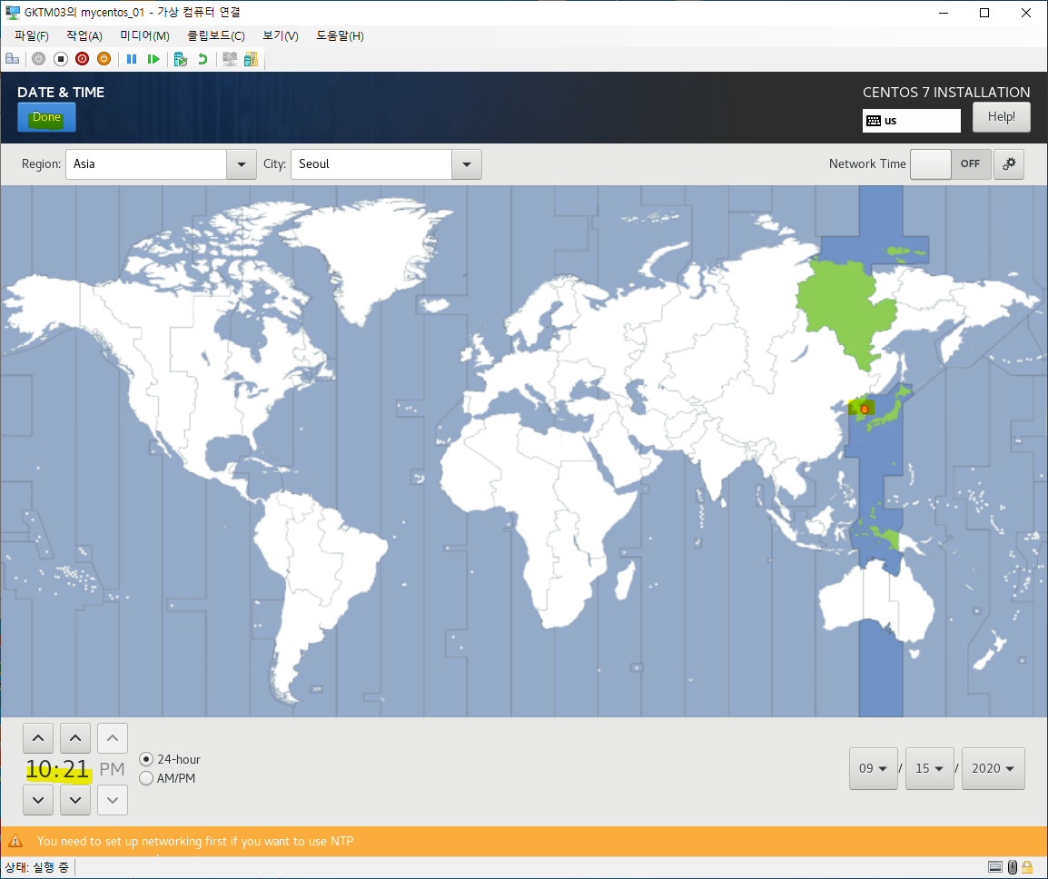 위치와 시간을 조정한 후 <Done>을 클릭합니다.