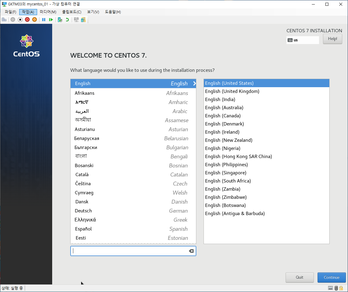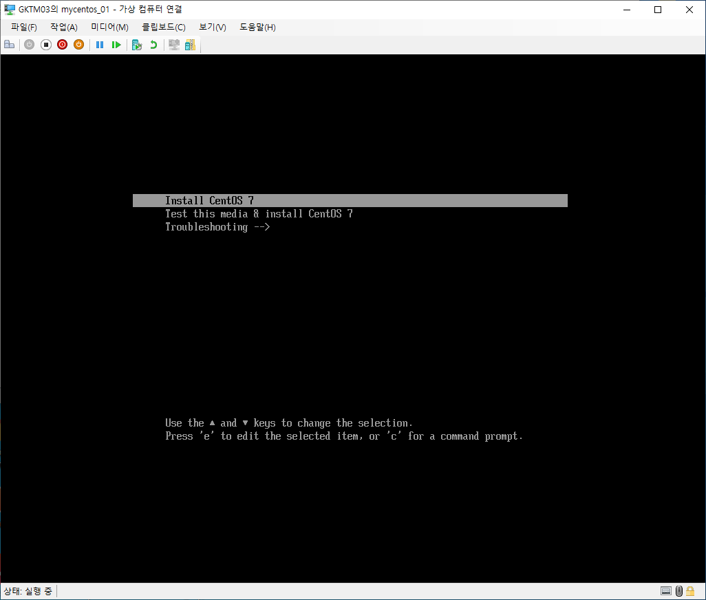 <Install CentOS 7>을 선택한 후 엔터를 누릅니다.
