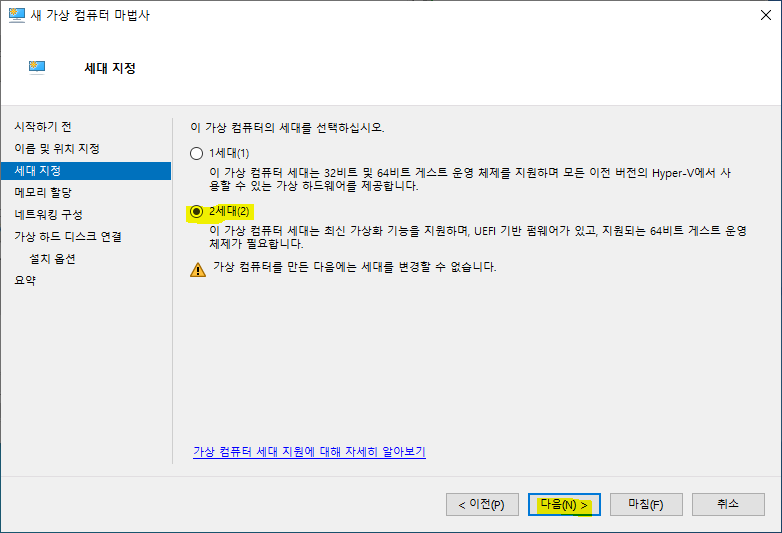 <세대 지정>에서 <2세대> 선택 후 <다음>을 클릭합니다.