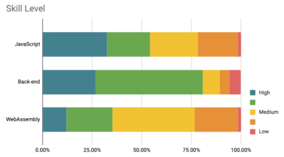 응답자들은 자바스크립트, 백엔드 및 WA 개발에서 자신의 기술 수준을 발표하도록 요청받았다.