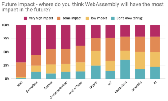 - 웹 어셈블리는 웹, 서버리스, 게이밍 그리고 컨테이너 화 앱에서 가장 큰 영향력을 가질 것으로 기대된다.