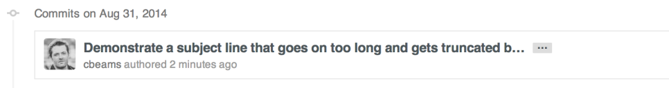 50자는 엄격한 제한이 아니라 경험적인 값이다. 제목 줄을 이 길이로 유지하면 읽을 수 있다는 것을 보장하며, 저자는 현재 진행 중인 내용을 가장 간결하게 설명하는 방법에 대해 잠시 고민하게 된다.