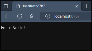 웹 브라우저에서 http://localhost:8787 로 접속하면 ‘Hello World!’라는 문자열을 확인할 수 있습니다.