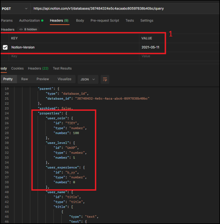 Notion-Version 헤더는 반드시 2021-05-11 이어야 합니다. 그 이후의 버전 값은 데이터베이스 내의 컨텐츠를 반환하지 않습니다.
