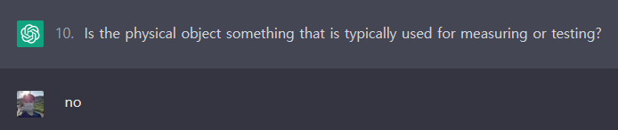 질문 1. 당신이 생각하고 있는 것이 물리적 대상입니까? > yes