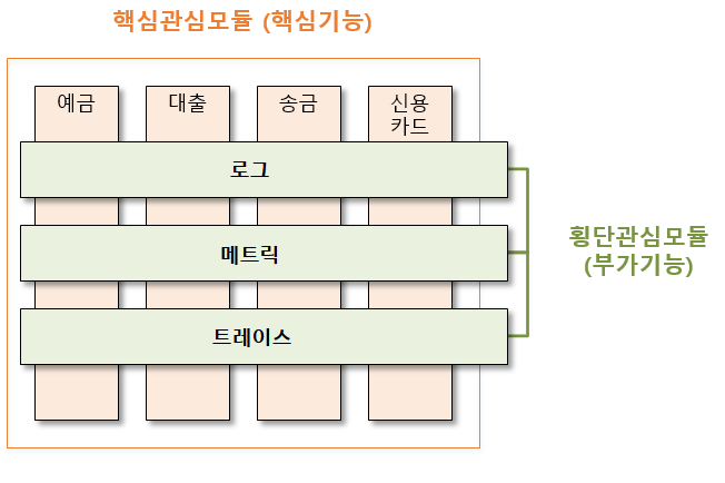 일반적으로 횡단 관심사 (Cross-Cutting Conern)는 애플리케이션 내 여러 레이어 또는 여러 서비스 간의 공통 관심사를 의미합니다. 예를 들어, 로그, 메트릭, 트레이스와 같은 텔레메트리 데이터는 여러 서비스에서 공통적으로 필요한 기능이므로 이러한 기능을 횡단 관심사로 분류할 수 있습니다.